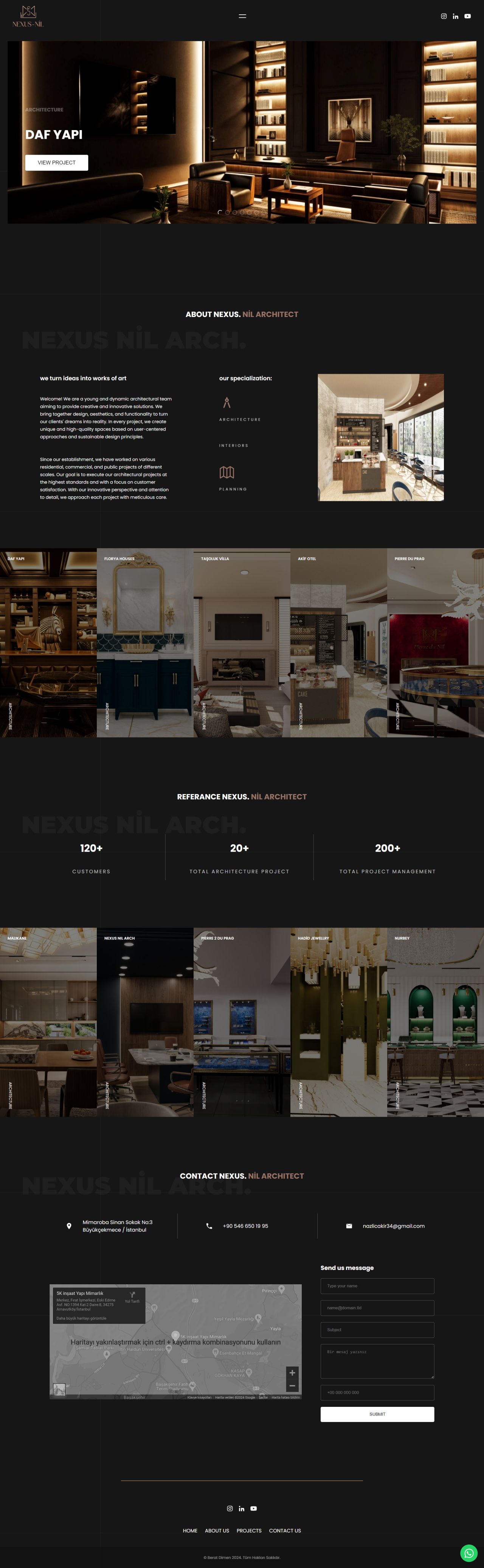 Nexus Nil Architect is a modern and elegant architecture website designed to showcase projects, introduce the team, and provide seamless contact options. Built with Next.js, React, Tailwind CSS, and Framer Motion, it delivers a visually refined and responsive user experience. Featuring real project images, smooth animations, and integrated Google Maps, it serves as a professional digital presence for an architecture firm.